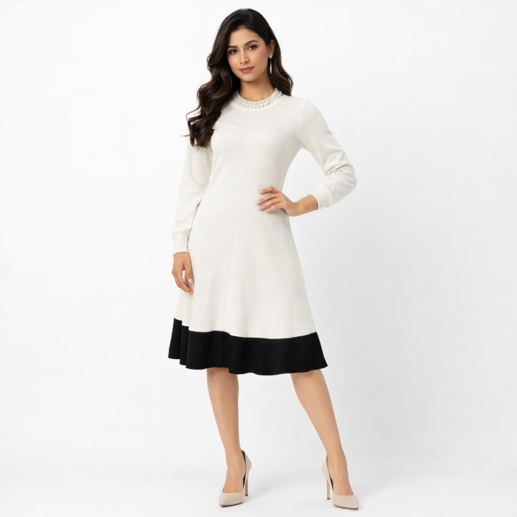 Upgrade your wardrobe with this elegant western dress from The Glow Grace, designed for modern women who love effortless style and comfort. This white and black knee-length dress features a slim-fit silhouette that enhances body shape beautifully, making it perfect for casual outings, office wear, parties, and evening gatherings. Crafted with premium-quality fabric, this dress offers a soft feel, breathable comfort, and a classy look that stays stylish all day long. Pair it with heels or flats to create a stunning fashion statement.