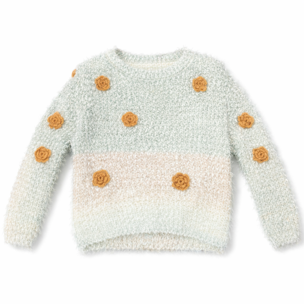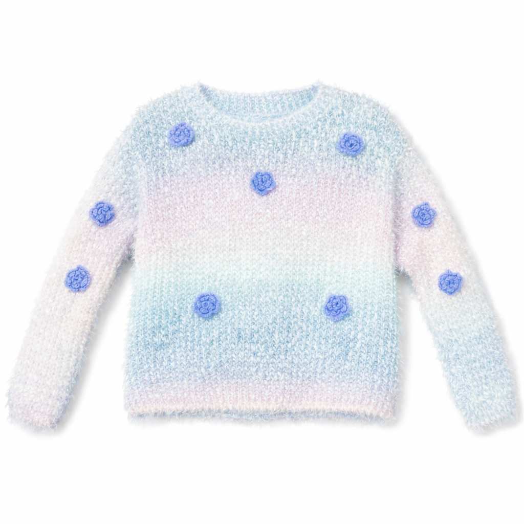 Soft fuzzy western sweater with a pastel gradient finish and 3D floral detailing. Perfect for cozy, stylish winter looks.